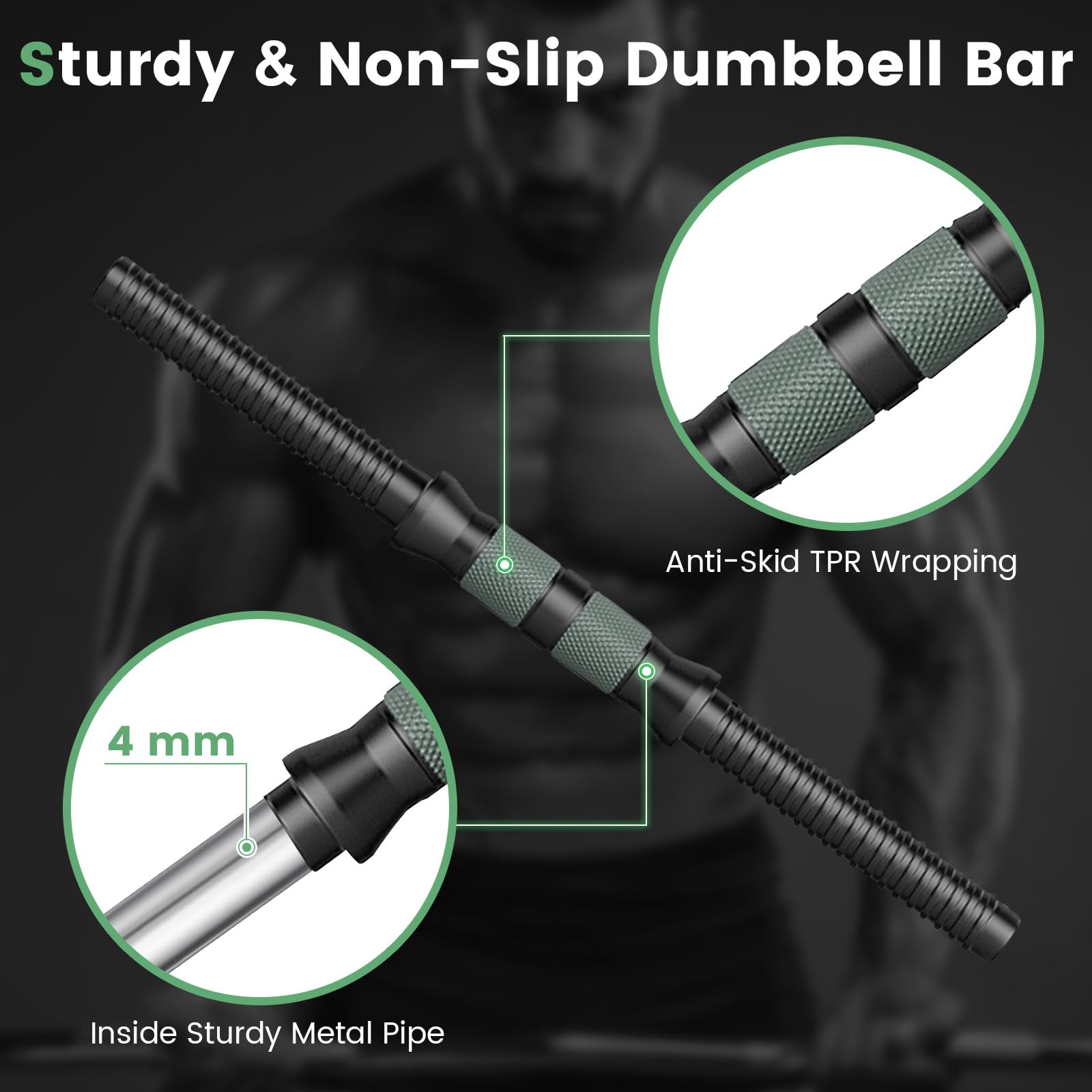 Dumbbell bar made of sturdy inside metal pipe and anti-skid TPR wrapping