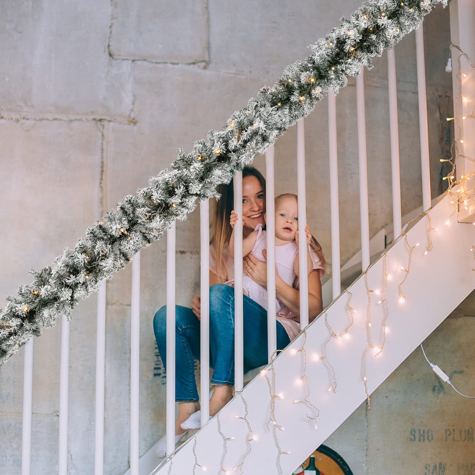 Composed of 140 PVC branch tips, the 270cm holiday rattan performs a vibrant appearance while gaining better fire and fade resistance. Press the "on" button and 50 LED lights will be turned on to glow warm white. If you press the "timer" button, the Christmas rattan will emit warm white lighting for 8 hours and then be turned off for 16 hours. By the way, the IP44 battery box needs three batteries which are not included. Finally, the holiday rattan is bendable, allowing you to adjust its shape to fit diverse occasions, such as a fireplace, home gate, staircase and so on.