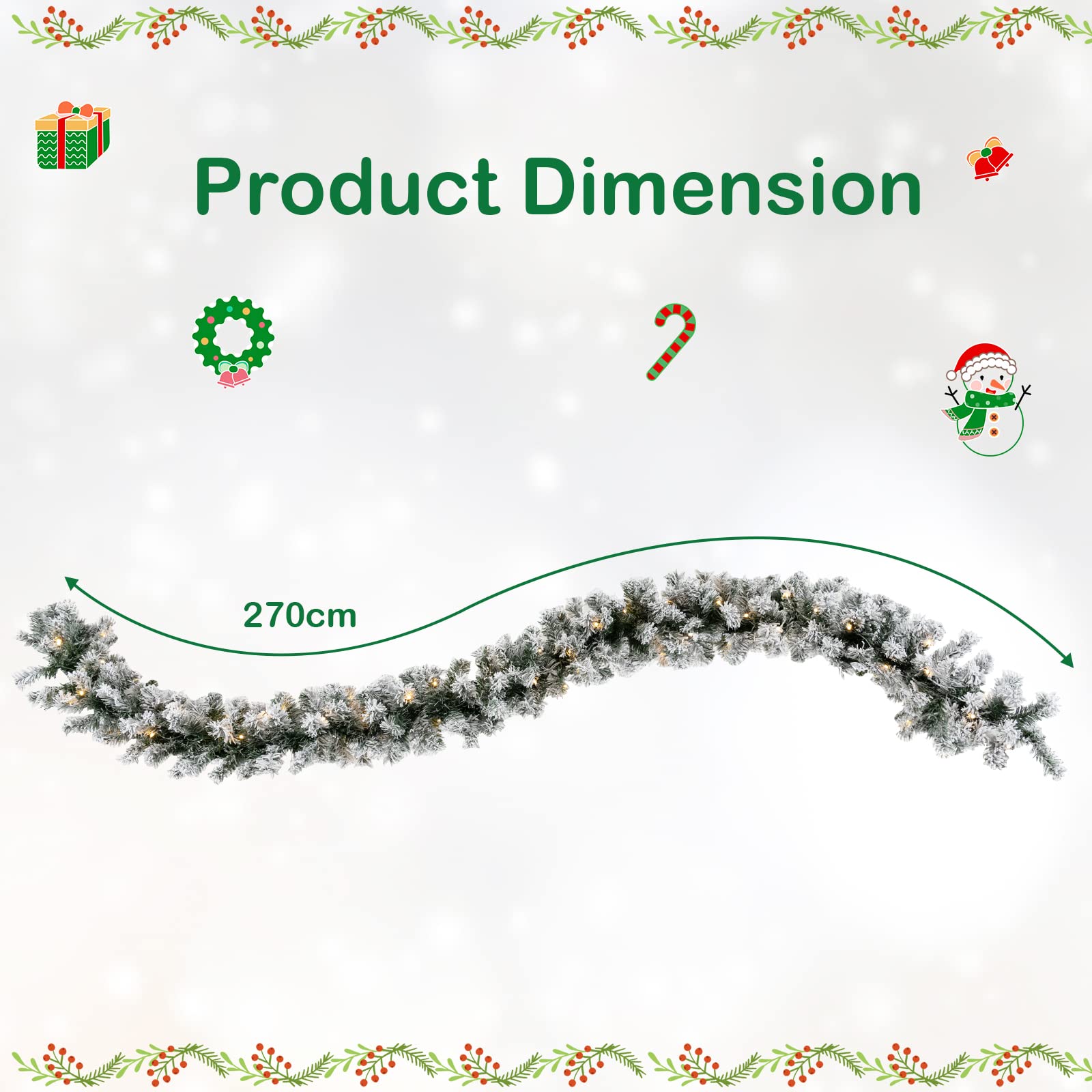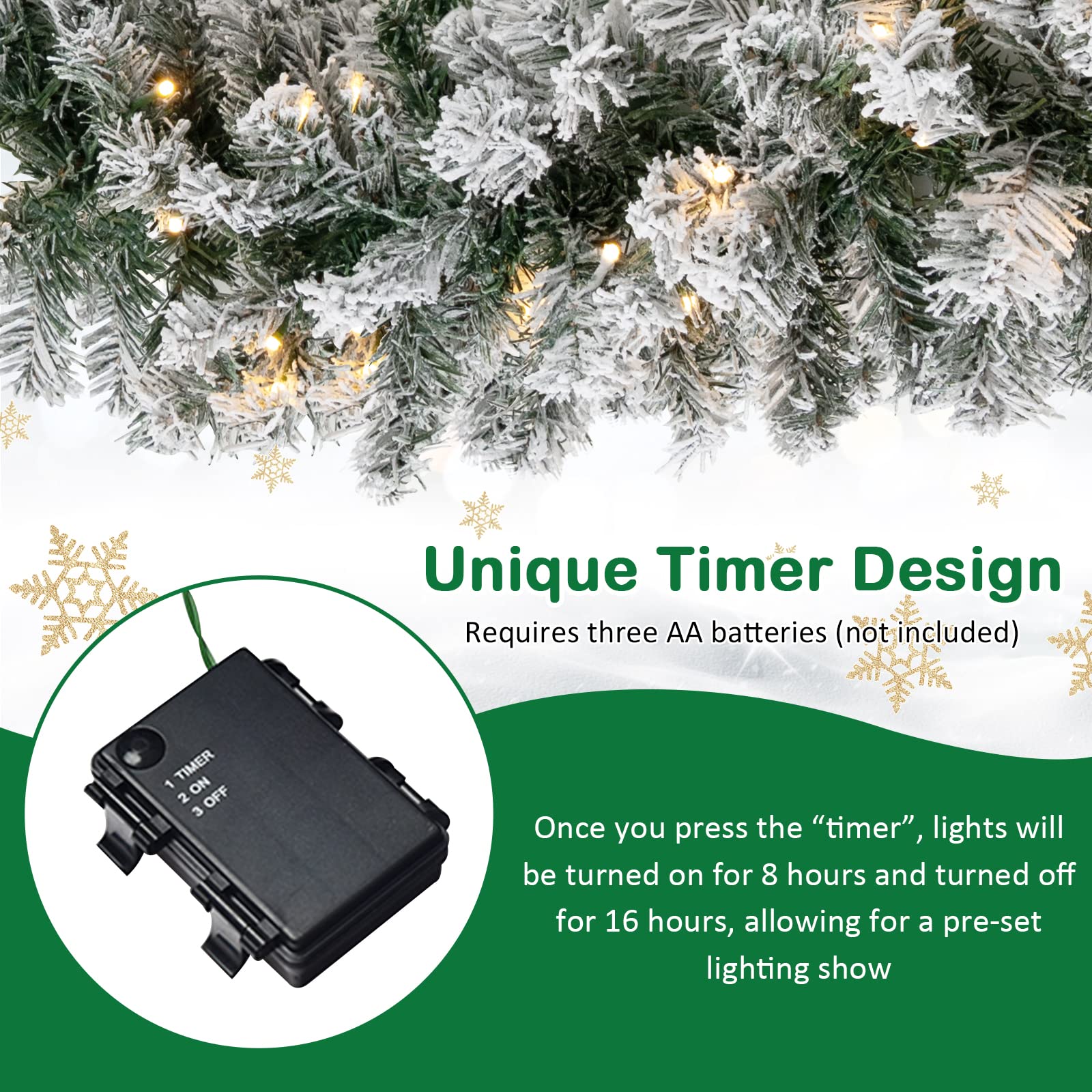 270CM Flocked Christmas Rattan with Timer & LED Lights for Mantle