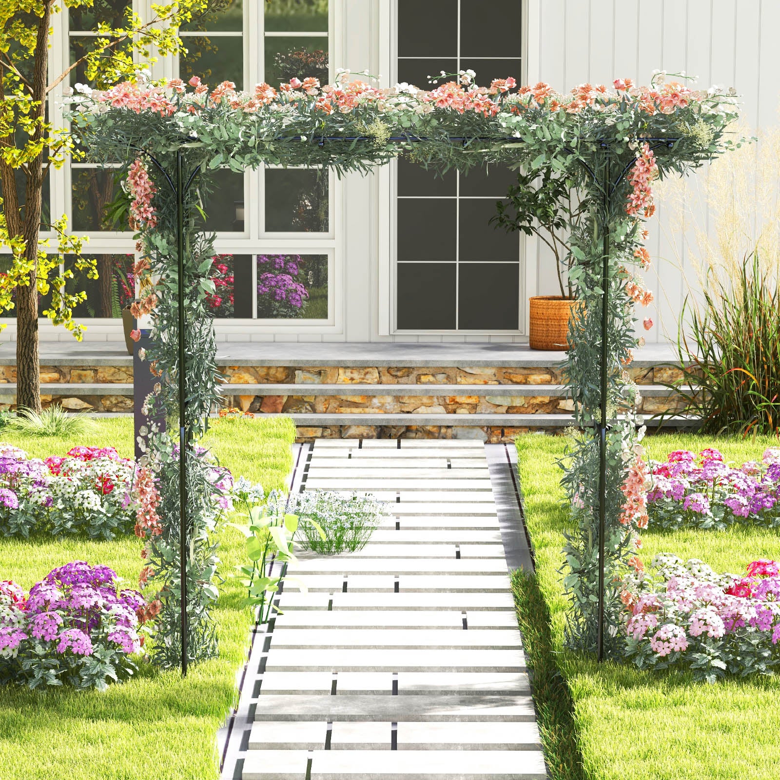 2M Garden Arbor, Metal Archway Perfect for Roses and Climbing Plants, Decorative Lawn Arbor
