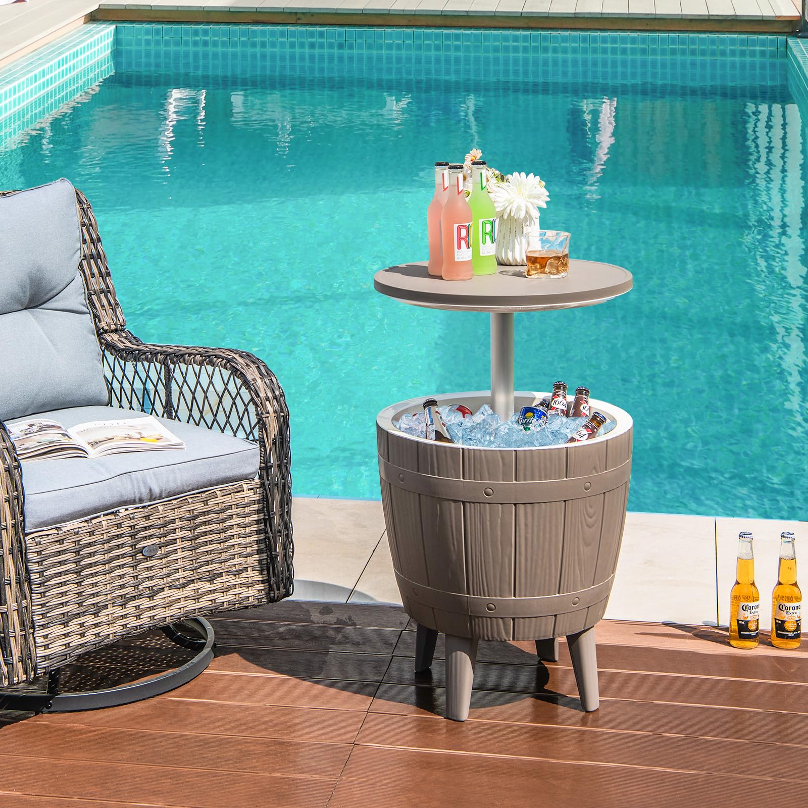 3-in-1 Versatile Design: Elevate your outdoor gatherings with this 3-function cooler bar table that transitions seamlessly from a refreshing ice bucket to a stylish side table or cocktail table, which is perfect for versatile entertainment options.