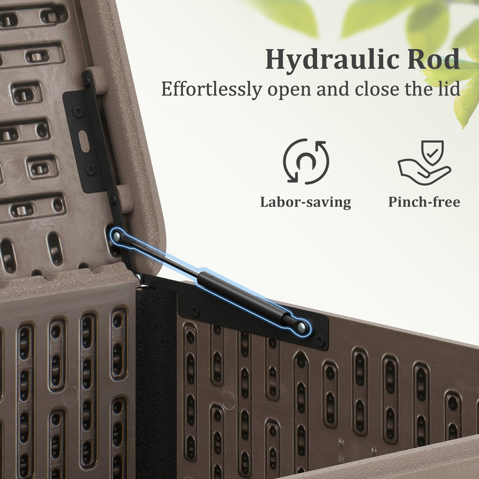 Pinch-free gas strut ensures smooth opening and closing of the lid