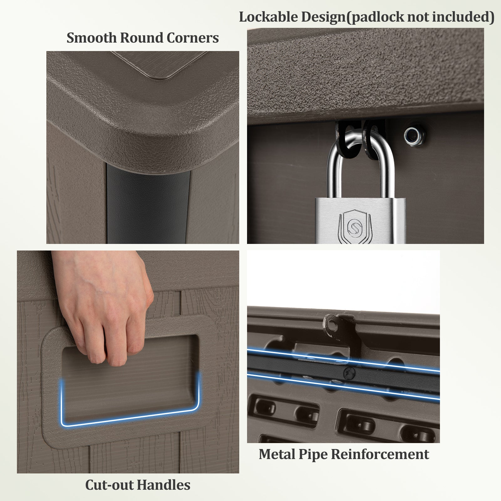 Openable lid with lockable design(padlock not included) keeps your items safe