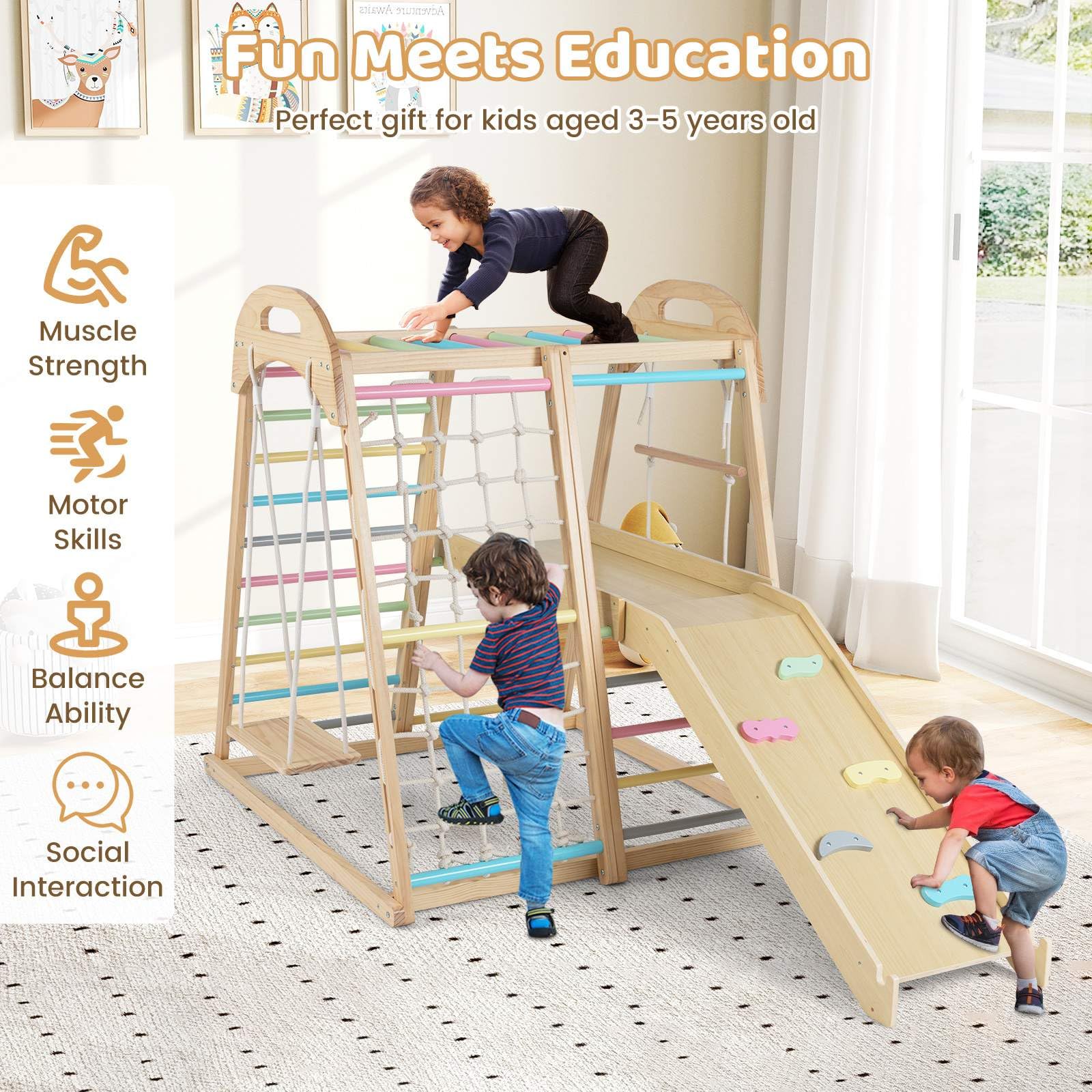 8-in-1 Jungle Gym, Wooden Montessori Climber Playset with Slide