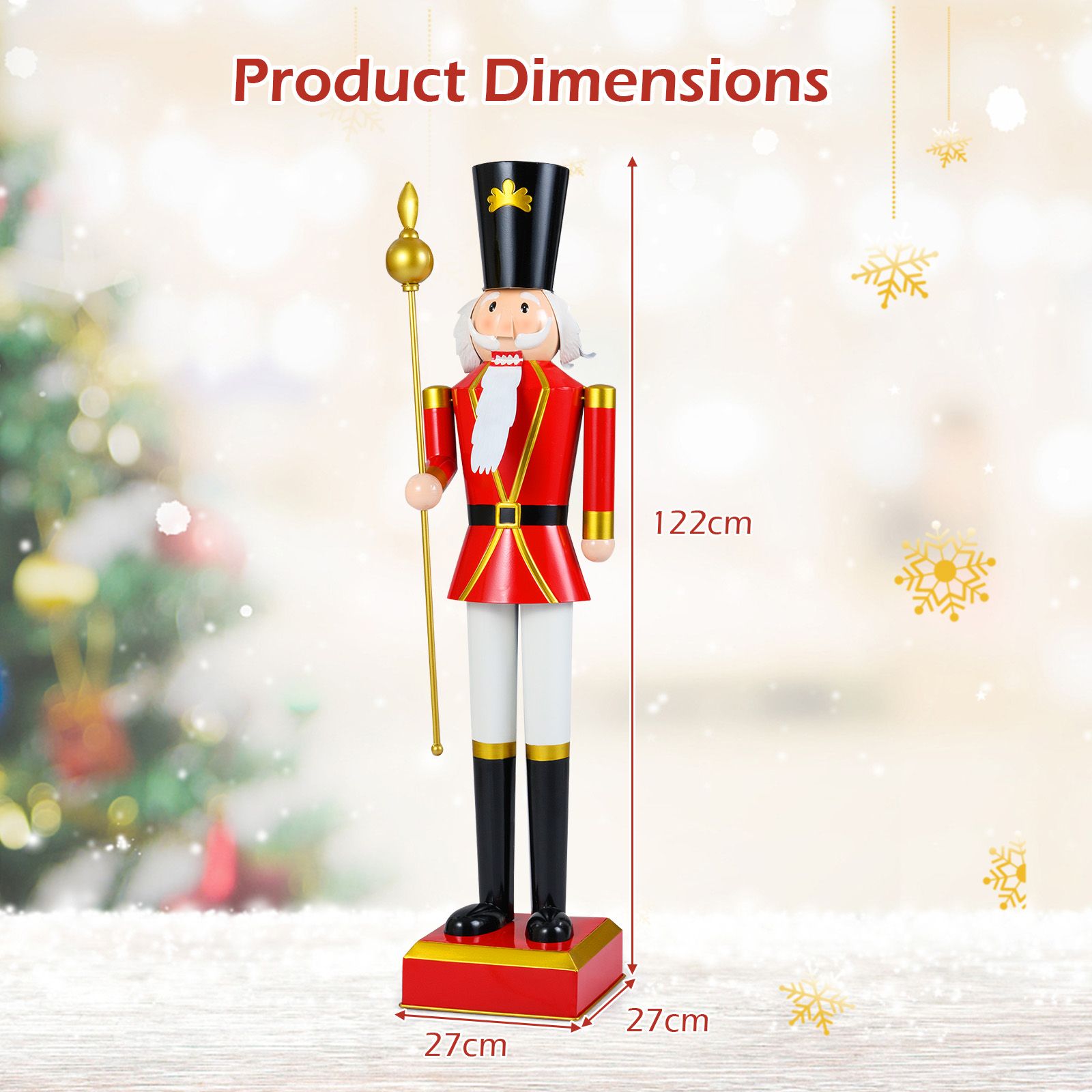 Simple Installation: The Christmas nutcracker ornament is super easy to assemble. You just need to install the scepter and base. The finished size is 19 x 19 x 83 cm (L x W x H).