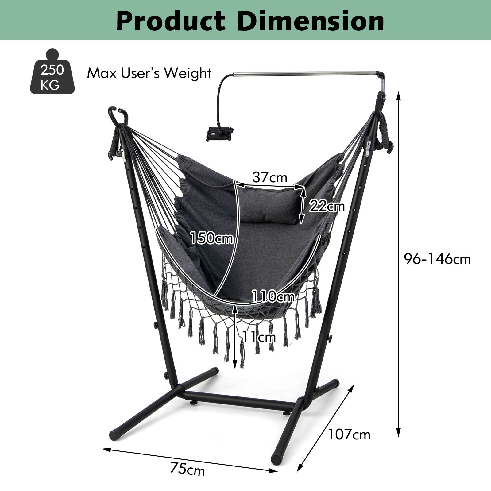 Steady yet Space Efficient Design: Supported by the heavy-duty metal, this bohemian style swing chair boats a strong weight capacity of 150 kg. As a result, you can sit with confidence and total relaxation. Nevertheless, the hammock with stand just takes a floor area of 1.05 ㎡.