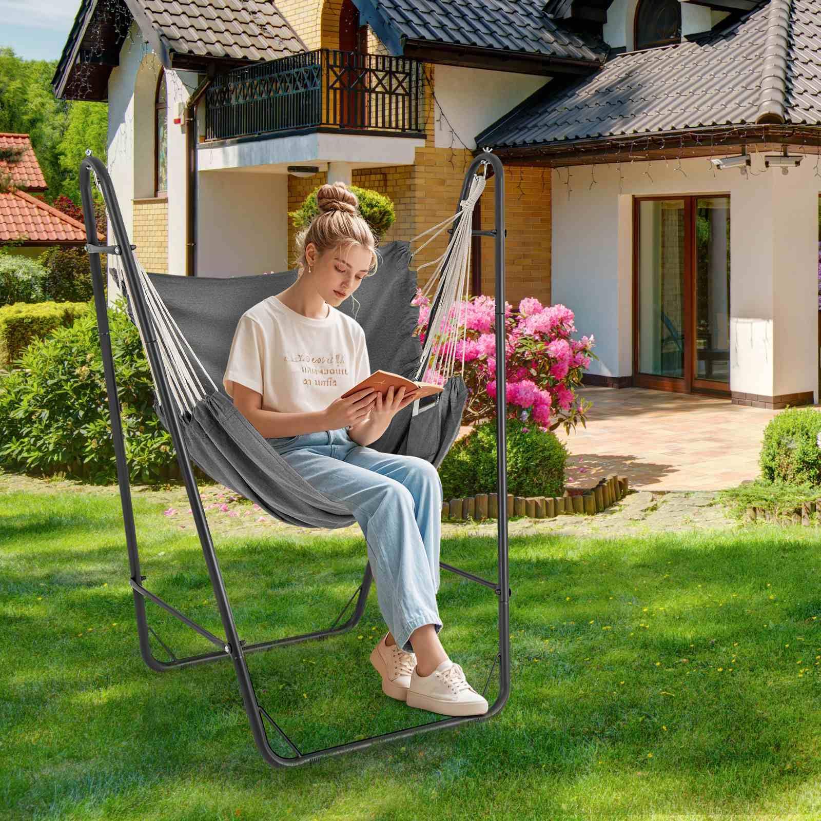 Heavy Duty Steel Stand: Supported by a sturdy steel stand, this hammock chair offers exceptional sturdiness and reliability. The reinforced crossbars, triangular structures and anti-slip foot pads further increase its overall stability.