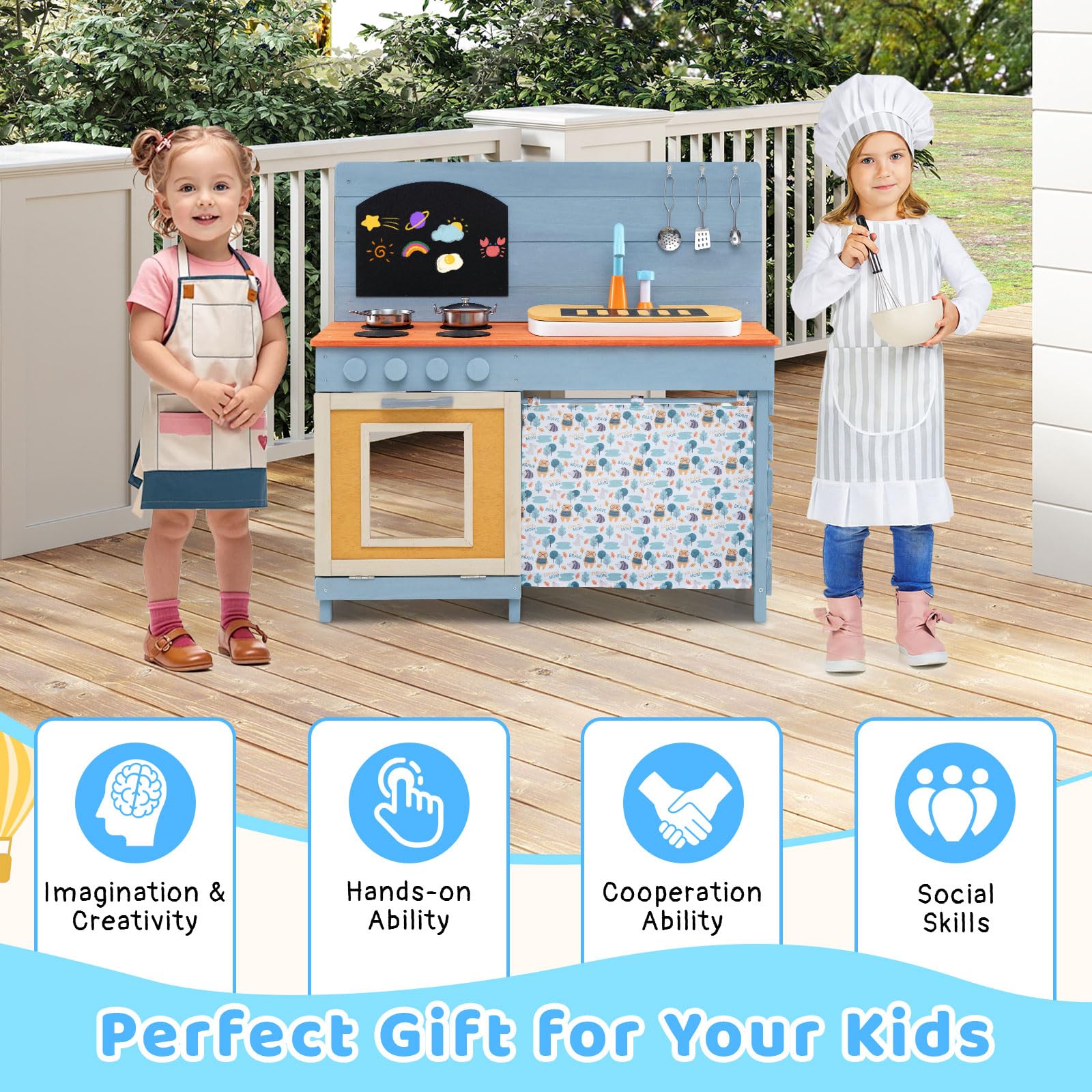 Outdoor Kids Play Kitchen Set, Wooden Kitchen Playset w/Stoves