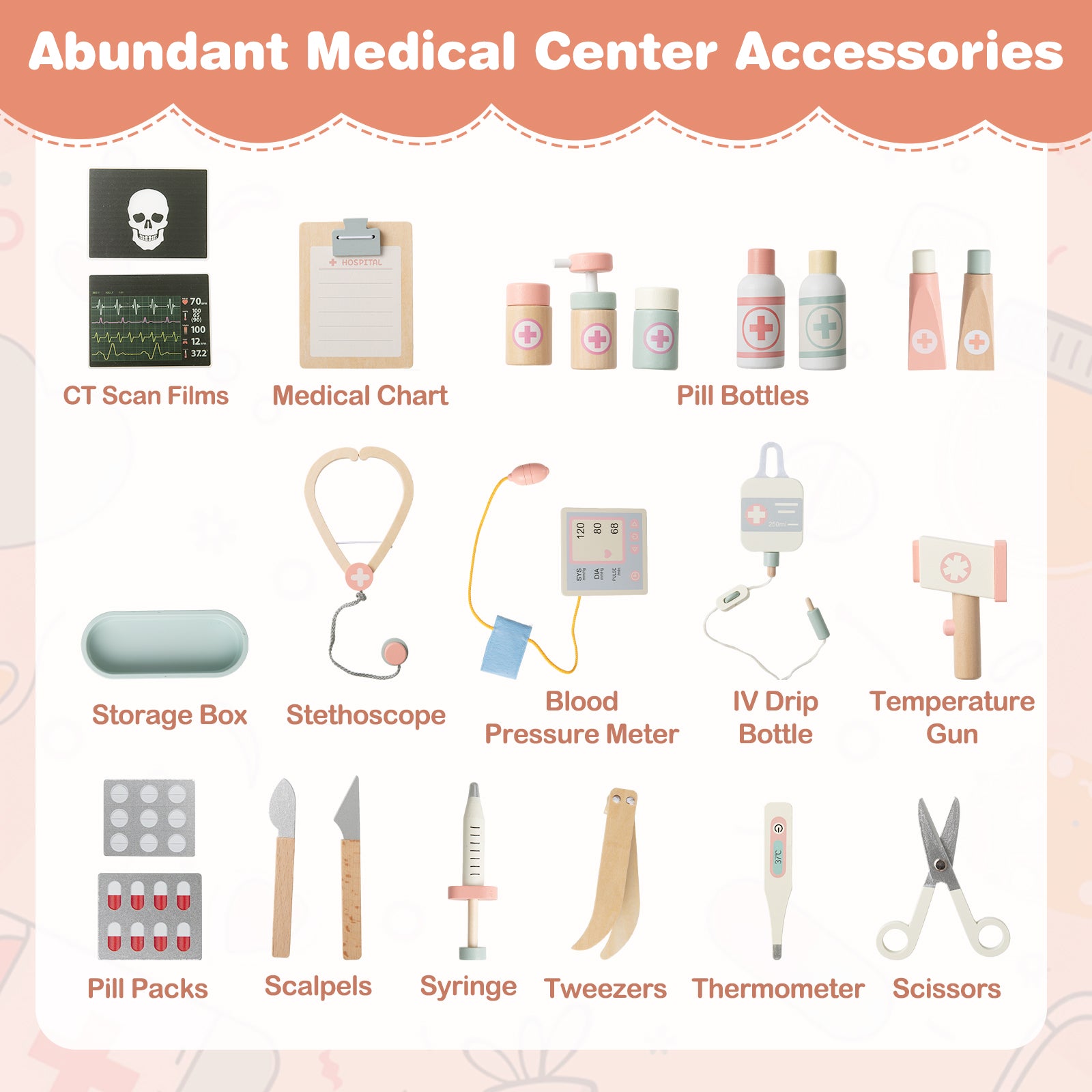 Wooden Doctor Playset with CT Machine and Stethoscope for Kids