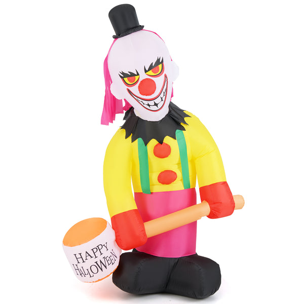 240 CM Giant Halloween Inflatables, Head Turning Clown with Hammer
