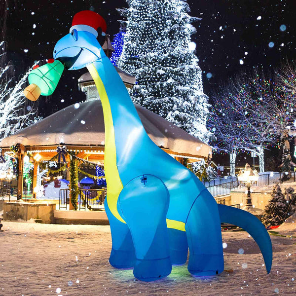 3.1M Christmas Inflatable Lighted Green Dinosaur with Hat