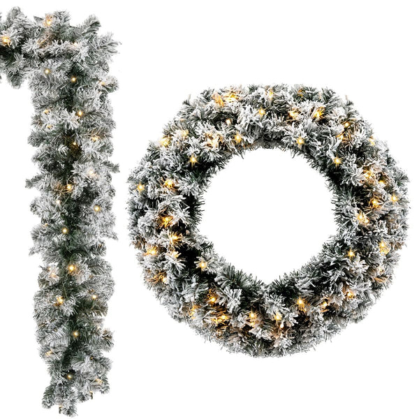 270CM Flocked Christmas Rattan & 61CM Christmas Wreath for Decoration