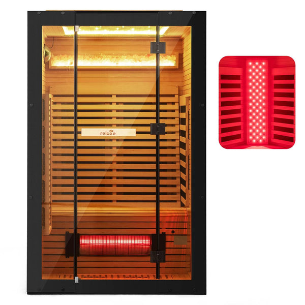 Infrared Wooden Sauna Room for 2 People with Heating Panels and Red Light Tubes