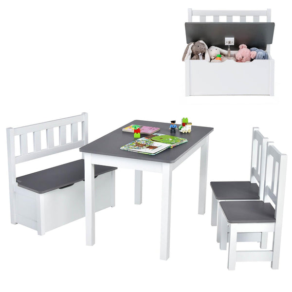 4-Piece Kids Table and Chair Set, Wood Activity Table with Toy Storage Bench