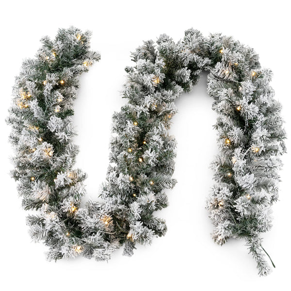 270CM Flocked Christmas Rattan with Timer & LED Lights for Mantle