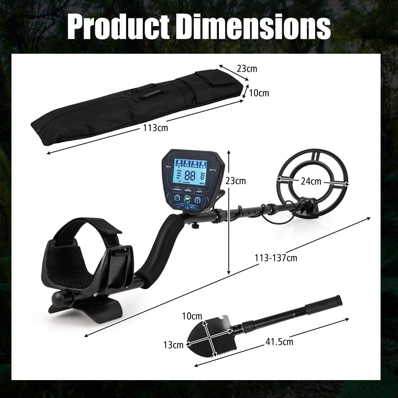 The gold detector boasts a smart DSP chip, uncovering treasures up to 25 cm deep with exceptional precision. Featuring 4 versatile detection modes – PP, SNIFF, NOTCH, and ALL METAL – you can customize your treasure hunting experience to meet your specific needs. The waterproof search coil allows for treasure detection in shallow water, while the 180° adjustable design provides extra flexibility. The clear LCD display offers real-time information to enhance your detecting efficiency. With 3 volume settings and a backlight for better visibility, you can easily distinguish between different underground objects. Additionally, this metal detector is adjustable for users of varying heights. Included accessories such as a carry bag, multifunctional shovel, headphone, and batteries add extra convenience to your treasure hunting experience.