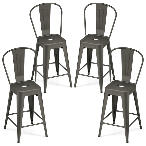 Metal Bar Stools Set of 4, 62 cm Counter Height Barstools with Backrests and Footrests