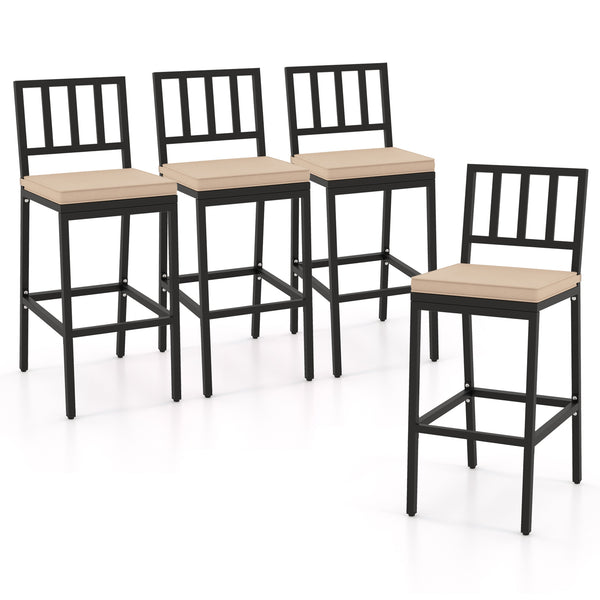 Metal Bar Stools Set of 4, 62 cm Counter Height Barstools with Backrests and Footrests
