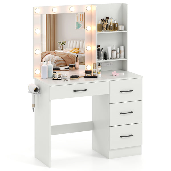 Makeup Vanity Desk w/ Mirror and Lights Dressing Table with Charging Station