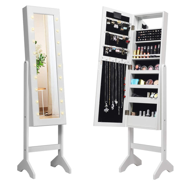 Giantex Jewelry Storage Armoire, Freestanding Jewelry Cabinet w/ Full-length Mirror, White