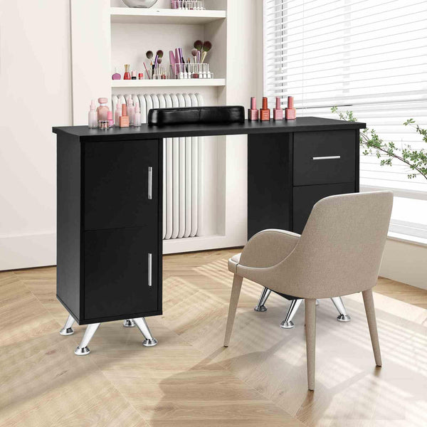 Manicure Table Nail Desk with Drawers, Wrist Rest, Metal Legs, Nail Tech Station