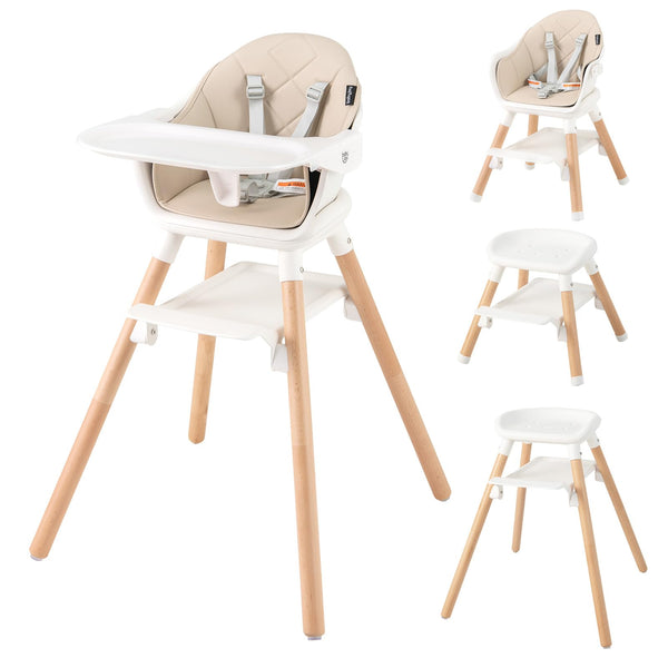 3 in 1 Wooden Convertible Baby High Chair with Removable Tray