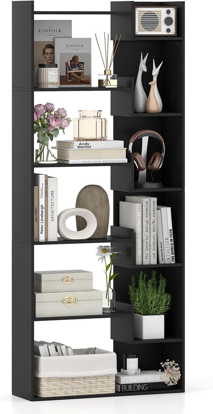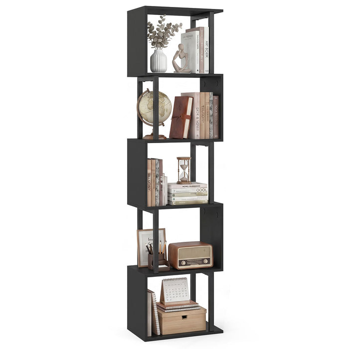 Giantex 5-Tier Bookshelf Geometric S-Shaped Bookcase w/Anti-Toppling Device