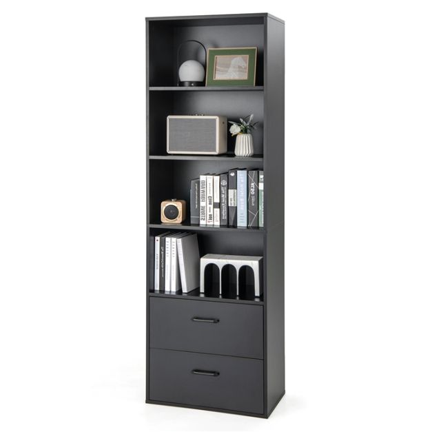 Giantex 188 cm Tall Bookshelf, 6-Tier Modern Bookcase with 4 Open Shelves & 2 Drawers