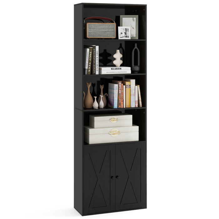 Giantex Farmhouse Bookcase with Doors, 180cm Freestanding Bookshelf with 6 Shelves & 2-Door Cabinet