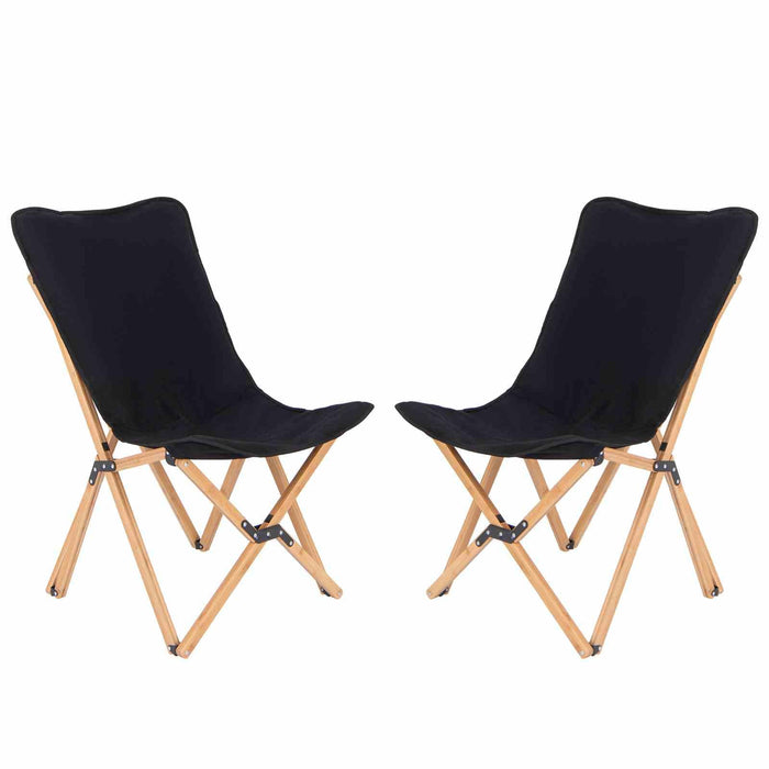 Butterfly Folding Chair Set of 2 Bamboo Dorm Sling Chair 150 kg Capacity Picnic