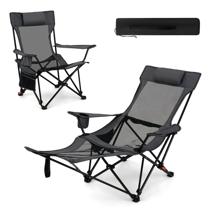 2 in 1 Folding Camping Lounge Chair with Detachable Footrest for Fishing Picnics