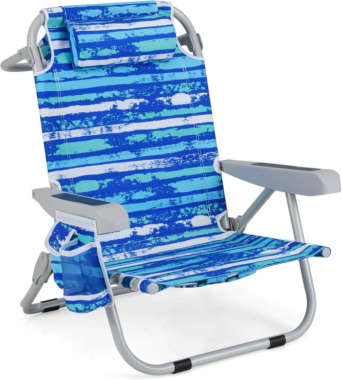 Backpack Beach Chair, Foldable 5-Position Lay Flat Lounge Chair w/ Cup Holder