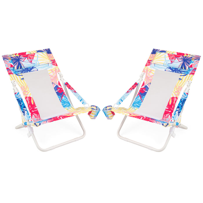 Folding Low Beach Chair, Set of 2, Patio Sling Chairs w/ Padded Head Pillow