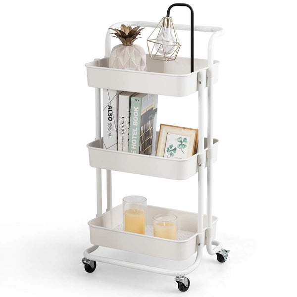 Giantex 3-Tier Kitchen Trolley Cart with Wheels, Multifunctional Cart with Utility Handle