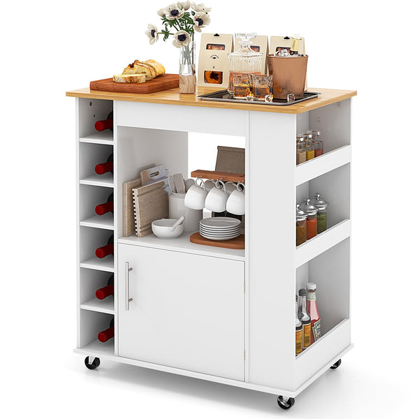 Kitchen Island Cart on Wheels, Portable Storage Cabinet w/Sturdy Bamboo Frame