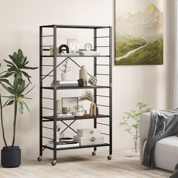 Giantex 5-Tier Foldable Shelving Unit, Heavy Duty Metal Shelves with Detachable Wheels
