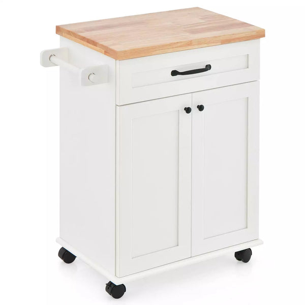 Giantex Small Kitchen Island Cart on Wheels, Rolling Kitchen Island w/ Rubber Wood Top, White