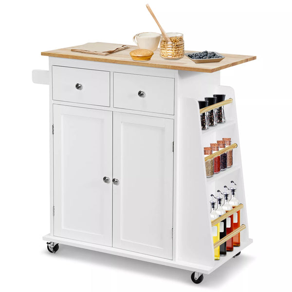 Giantex Kitchen Island Trolley, Rolling Kitchen Serving Trolley w/ 3 Spice Racks, Drawer, Open Shelf & Large Cabinet