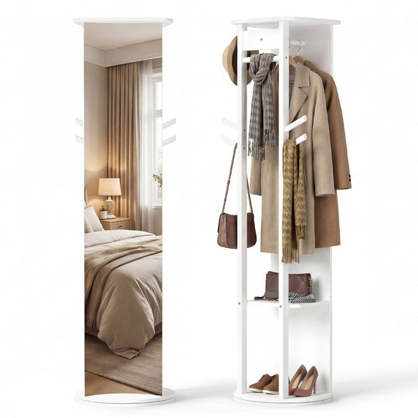 2-in-1 Full Length Mirror with Coat Rack and 4 Hanging Hooks