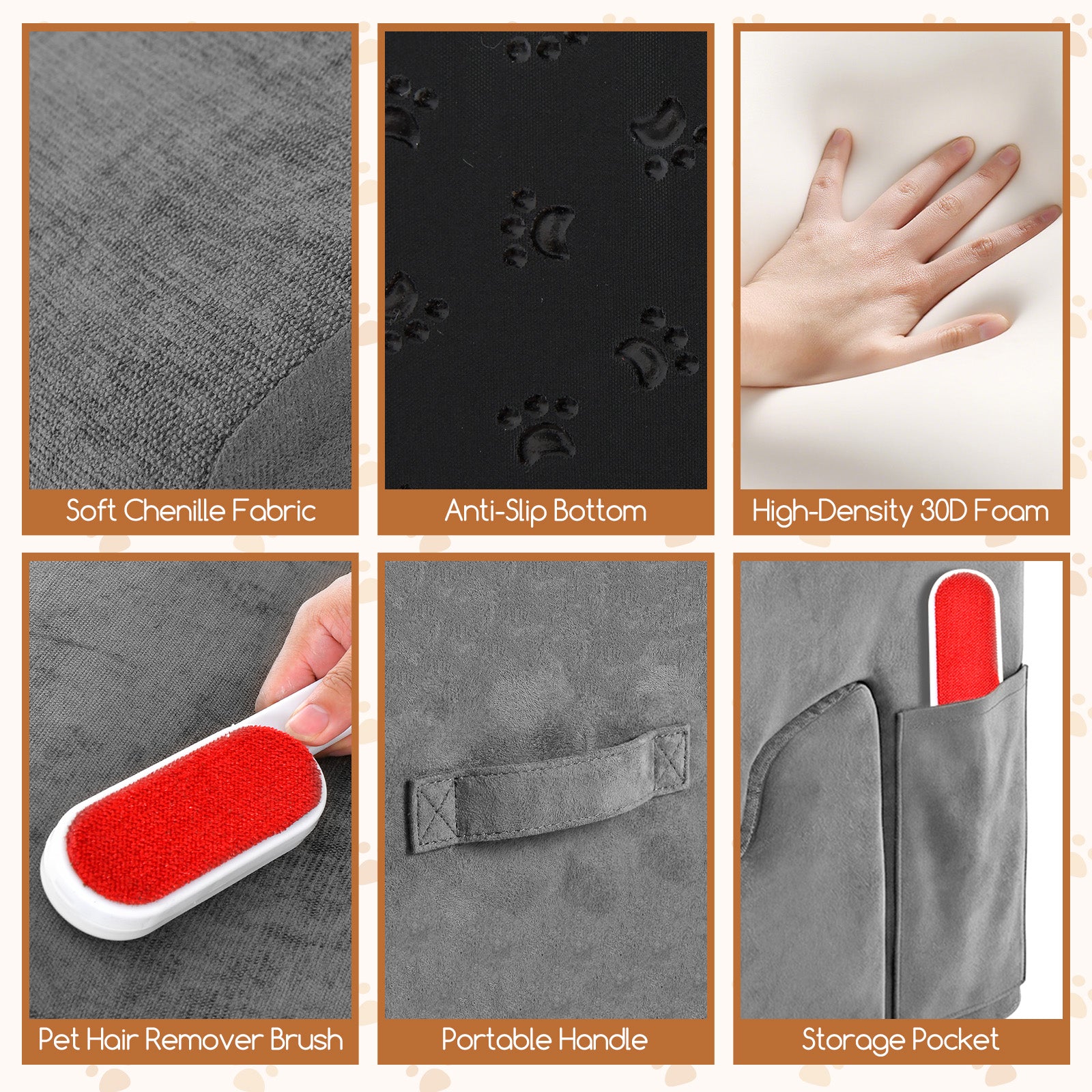 • The top chenille fabric surface adds friction, effectively prevent pets from slipping