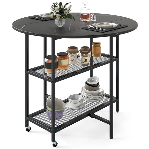Mobile Folding Dining Table Seats 2-4 People, Round Drop Leaf Kitchen Table