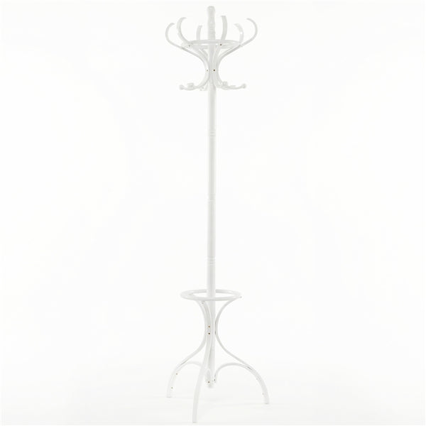 Wooden Coat Rack, Coat Stand w/ Umbrella Holder & 12 Hooks, 360°Rotating Top Tier