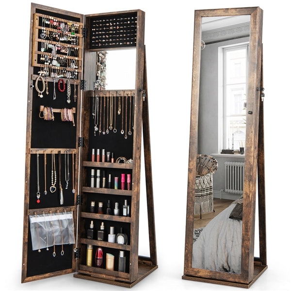 Giantex 2-in-1 Standing Jewelry Armoire w/ Higher Full Length Mirror, Lockable Jewelry Cabinet Organizer