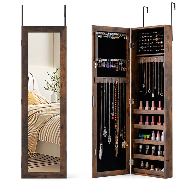 Giantex Jewelry Storage Armoire, Jewelry Armoire Organizer w/ Full Length Mirror, Wall Door Mounted Mirror Jewelry Cabinet
