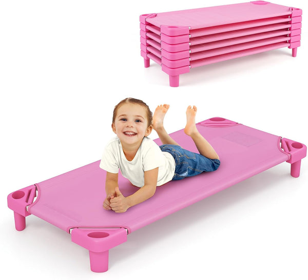 6 PCS Kids Stackable Daycare Cot, Pack of 6, 130cm x 57cm Portable Toddler Nap Mat w/Easy Lift Corners