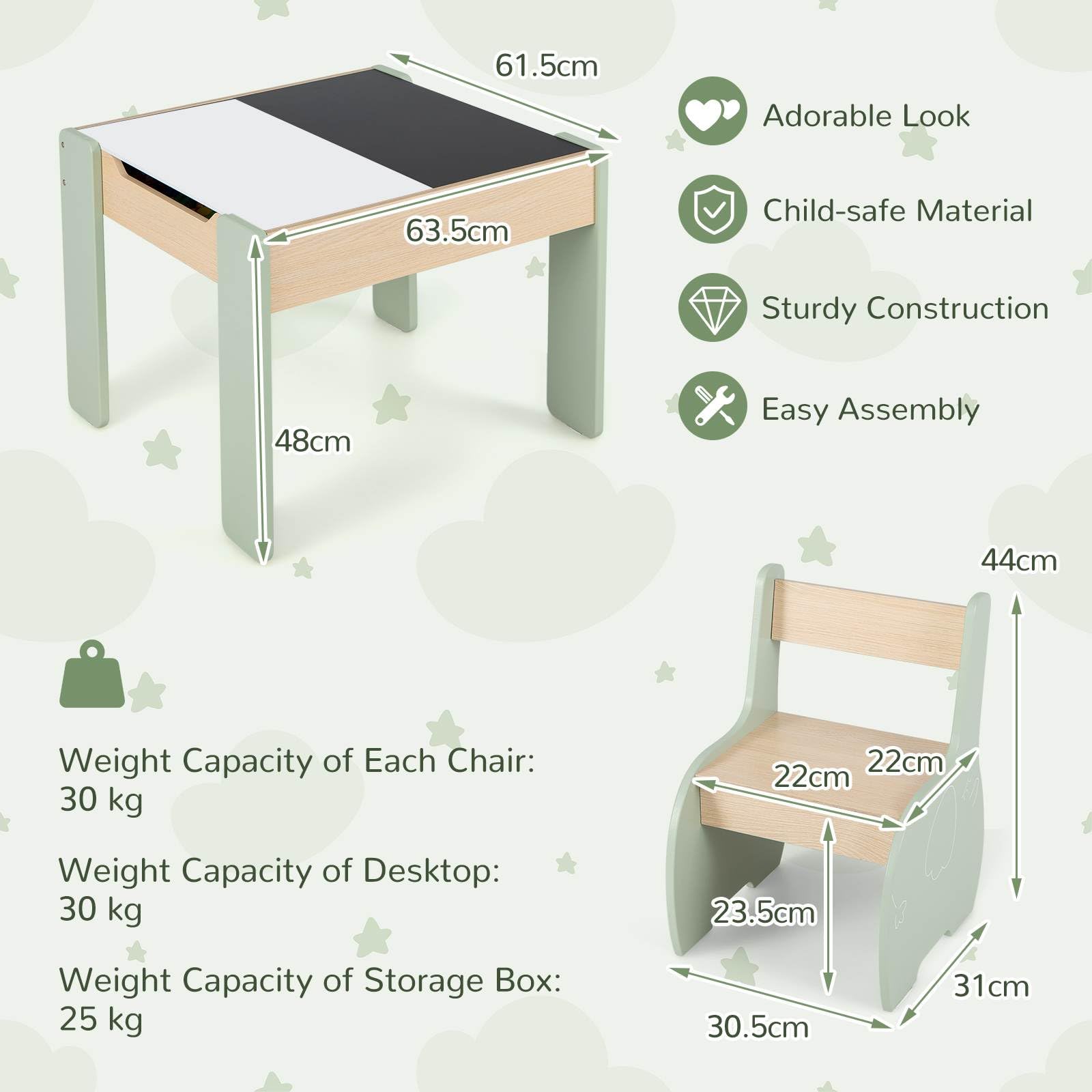 4-in-1 Wooden Kids Activity Table and Chair Set for Drawing and Studying