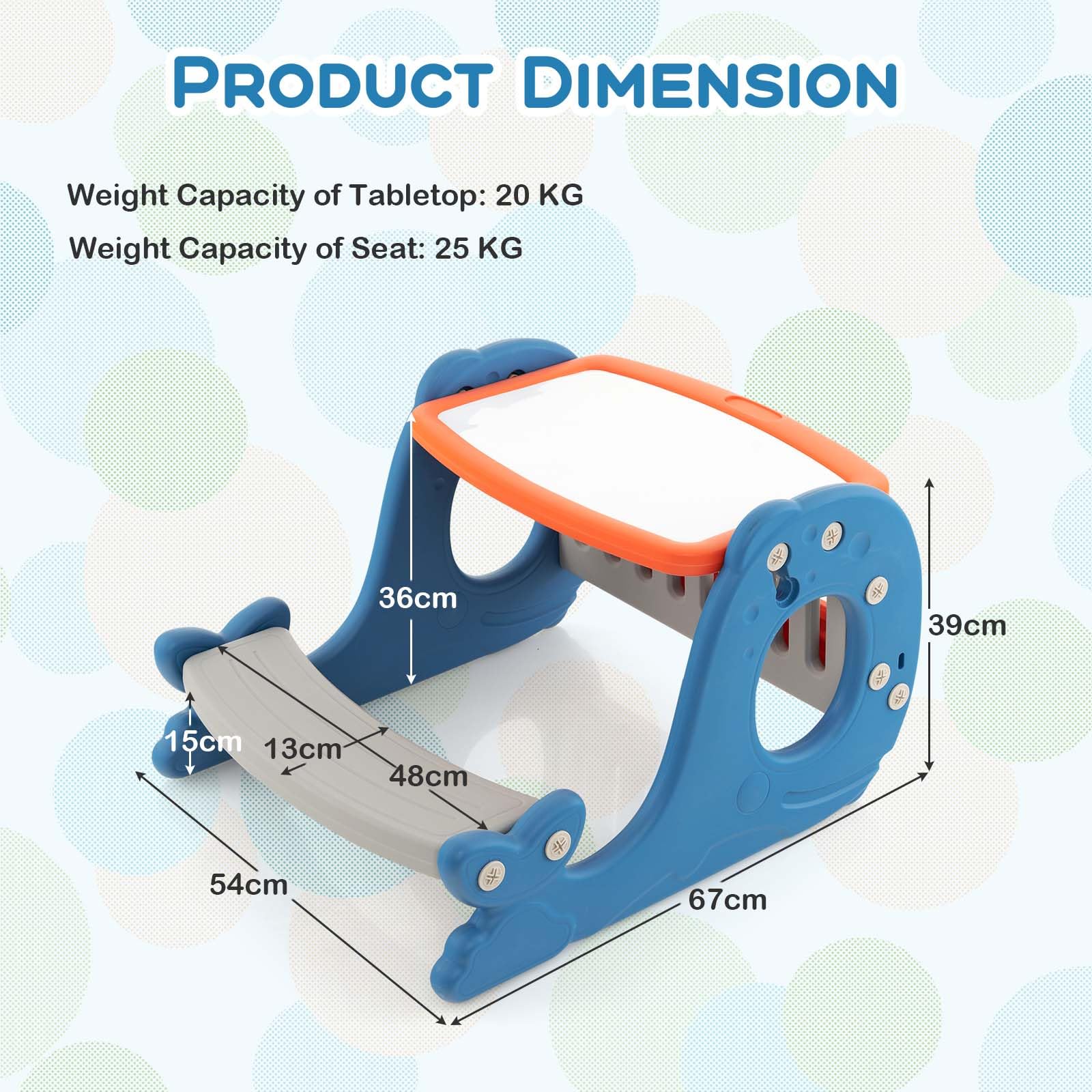 Ideal Gift Option for Your Kids: The whale-shaped outlook and bright colors will attract kids' attention. 15 cm seat height and 36 cm tabletop height make it suitable for toddlers over 1 years old. Simple installation process is time-saving and energy-saving. Plus, the wide base keeps it stable and steady, which is not easy to wobble, which protects kid's safety.