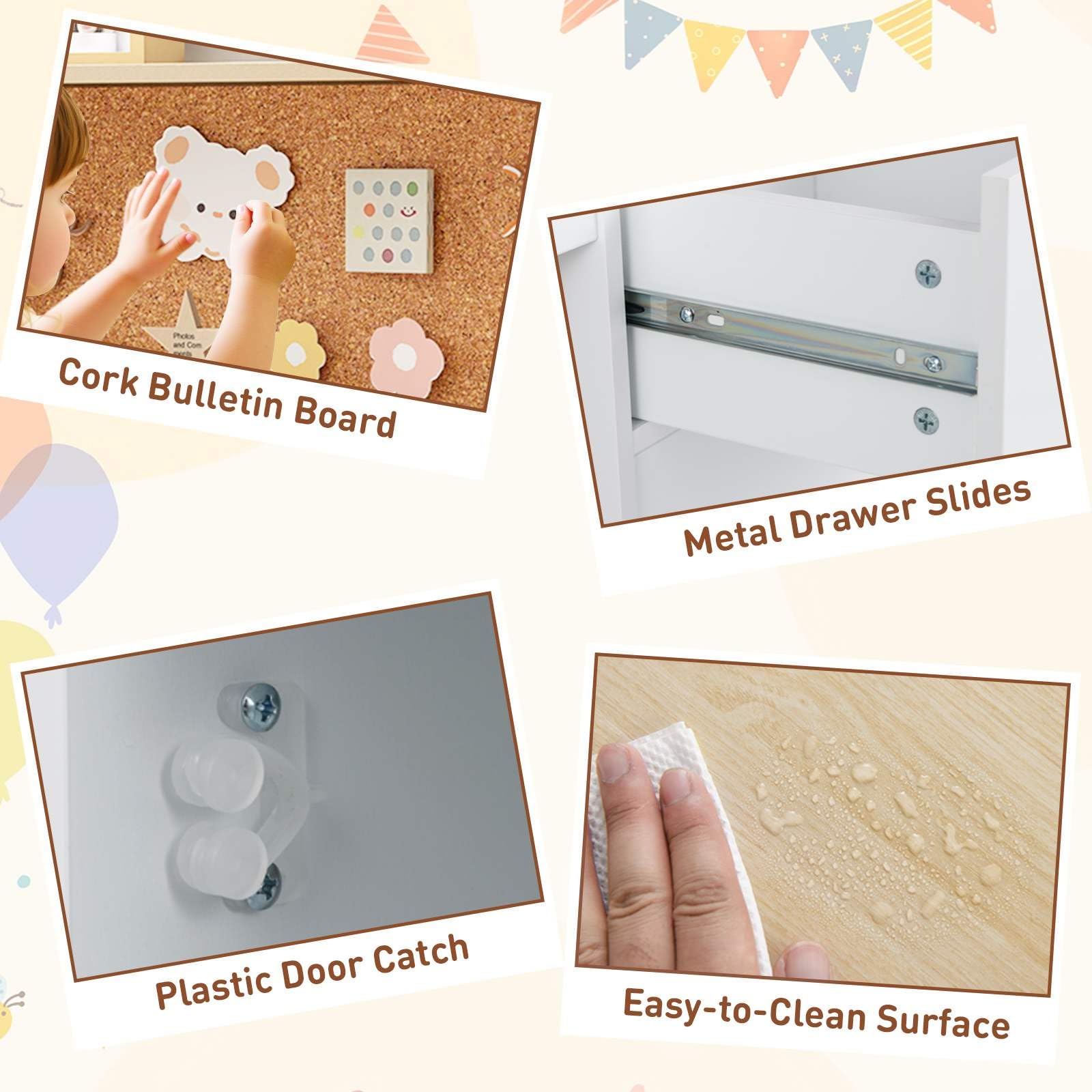 - Features a cork bulletin board to foster imagination