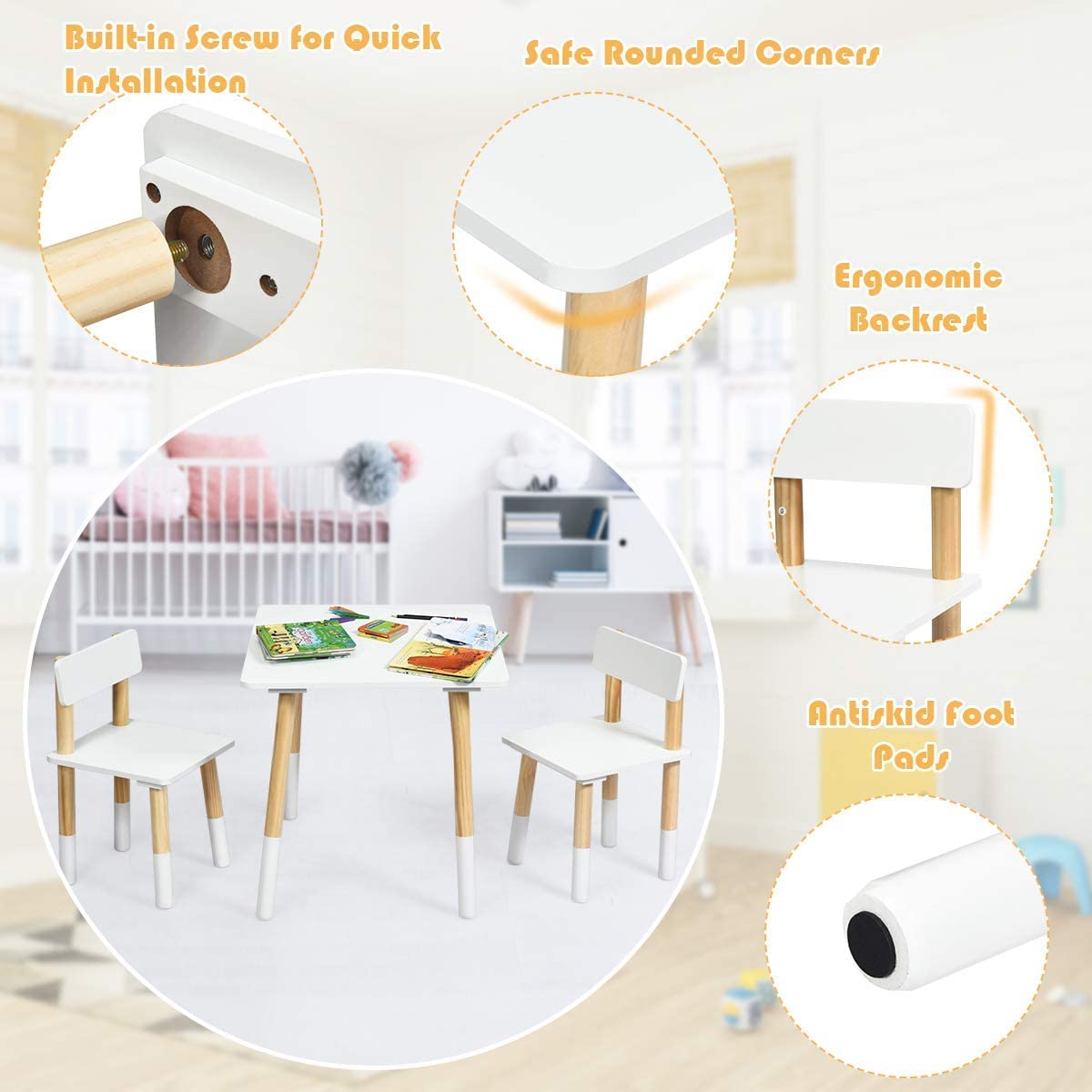 Kids Table and 2 Chairs Set with Pine Wood Legs for Playing & Learning & Eating