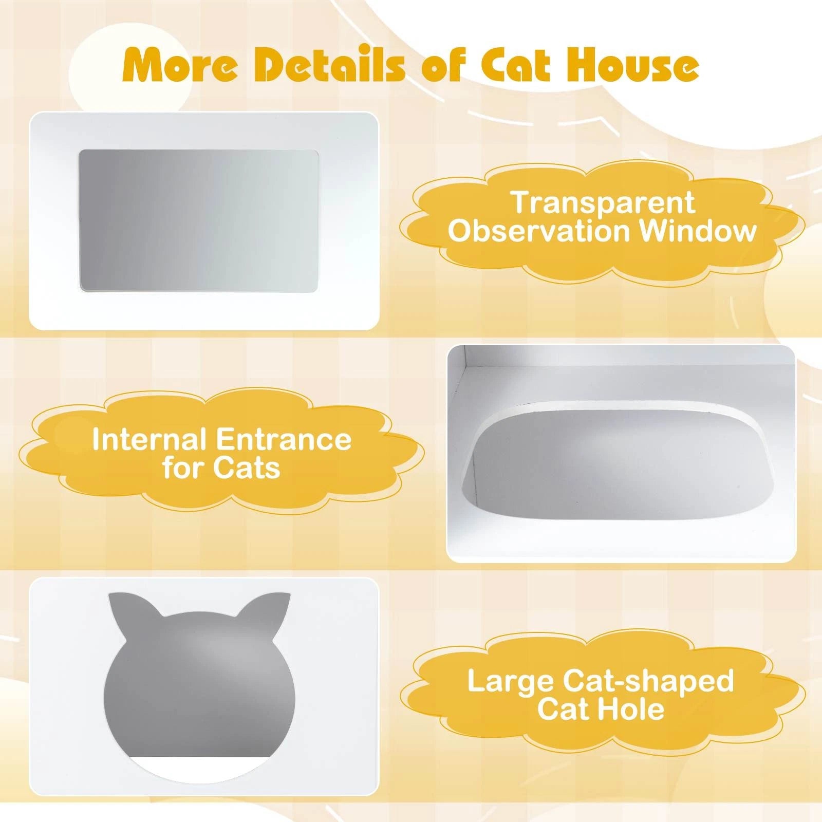 Provide versatile application, including drawing, reading, writing, eating, etc2 detachable storage bins to well organize kid's itemsMore details of cat house: transparent observation window, internal entrance for cats, and cat holeEasy-to-clean surface for effortless maintenanceSmooth rounded corners prevent scratching or bumpingComplies with ASTM/ CPSIA for higher securitySupportive backrest and comfortable seat for cozy sittingMore child-friendly features for safe useAssembly needed